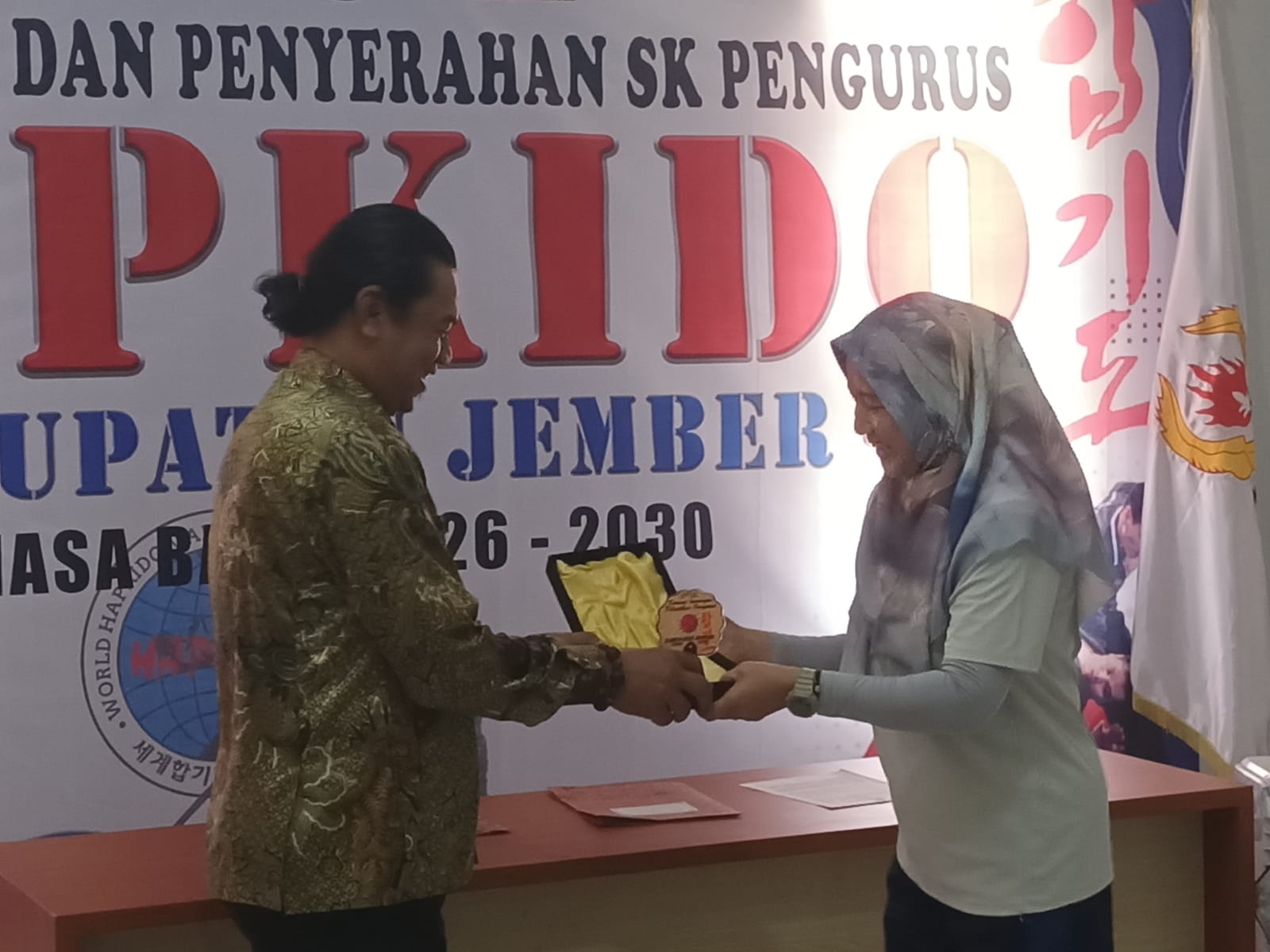 Jember,beritajatim.site – Cabang olahraga bela diri Hapkido resmi terbentuk di Kabupaten Jember setelah jajaran Pengurus Cabang (Pengcab) Hapkido Jember dilantik dan menerima Surat Keputusan (SK) dari Pengurus Daerah (Pengda) Hapkido Jawa Timur. Pelantikan berlangsung di Kantor KONI Jember, Sabtu (11/6/2026).