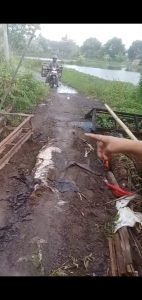 Sidoarjo,berita jatim.site – Salah satu akses jalan  jembatan sementara di Desa Kedungbanteng RT 06 RW 03 kini berada dalam kondisi memprihatinkan. Jalan tersebut hampir terputus akibat tergerus aliran air yang terus mengikis badan jalan, terutama saat hujan deras.