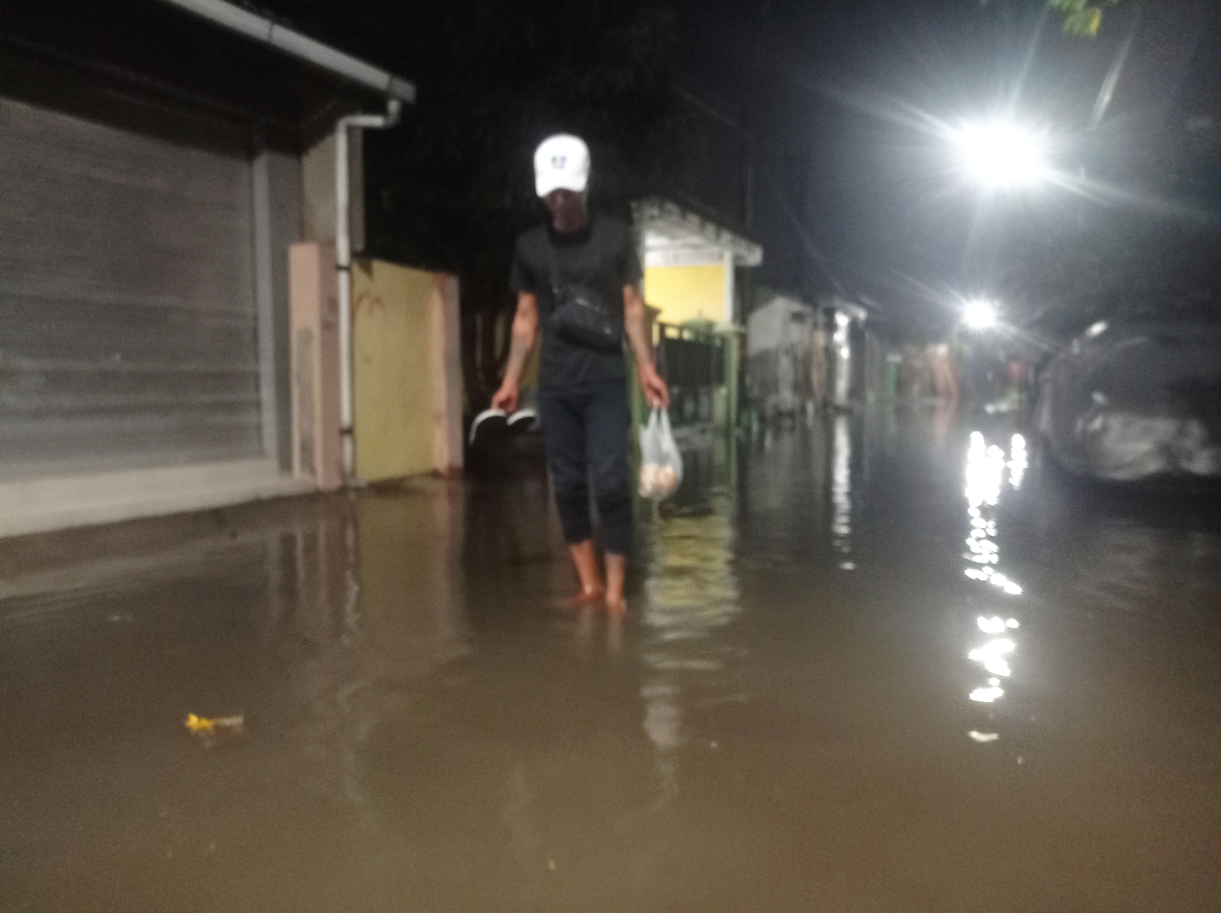 “Sungguh tidak kusangka banjirnya sebesar ini sampai ke sini. Air tidak bisa mengalir karena pembangunan pompa air belum selesai,” ungkap Waginem (68), salah satu warga RT.09/04 terdampak.